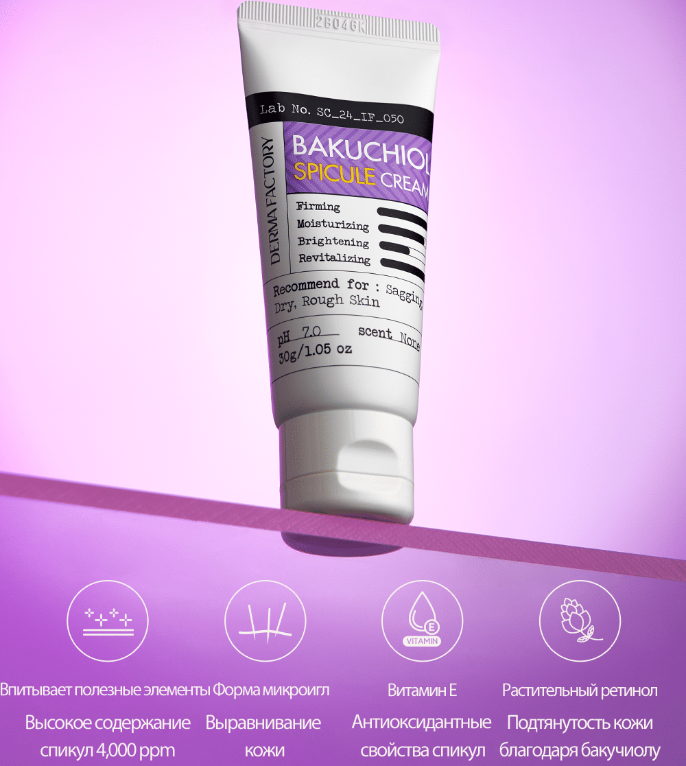 Крем антивозрастной с бакучиолом и спикулами Derma Factory Bakuchiol spicule cream 30г