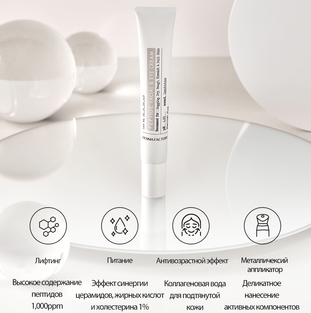 Крем для лица и кожи вокруг глаз с пептидами Derma Factory Peptide Facial And Eye Cream 20мл