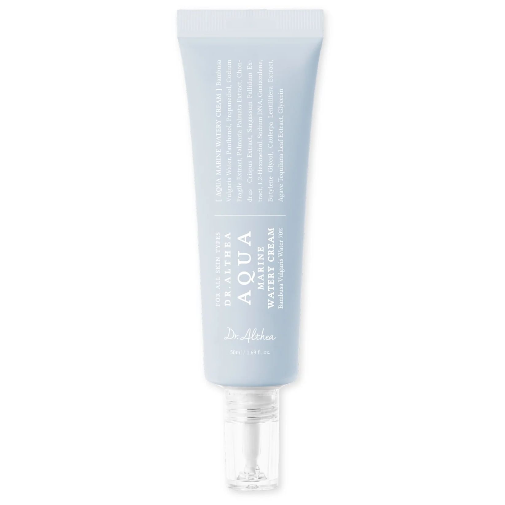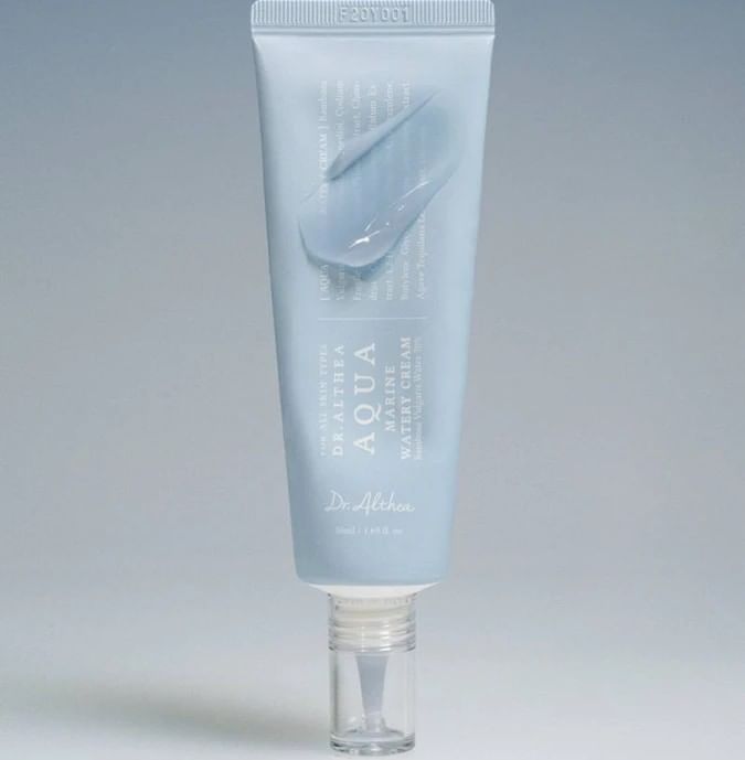 Увлажняющий крем Dr. Althea Aqua Marine Watery Cream — это лёгкий веганский крем-гель на основе 70% бамбуковой воды, разработанный для интенсивного и длительного увлажнения всех типов кожи, включая чувствительную. Он быстро впитывается, не оставляя липкости или жирной плёнки.