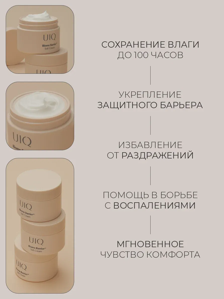 Нежный глубокоувлажняющий крем для ровного тона с комплексом постбиотиков UIQ Biome Barrier Soft Cream 60 мл