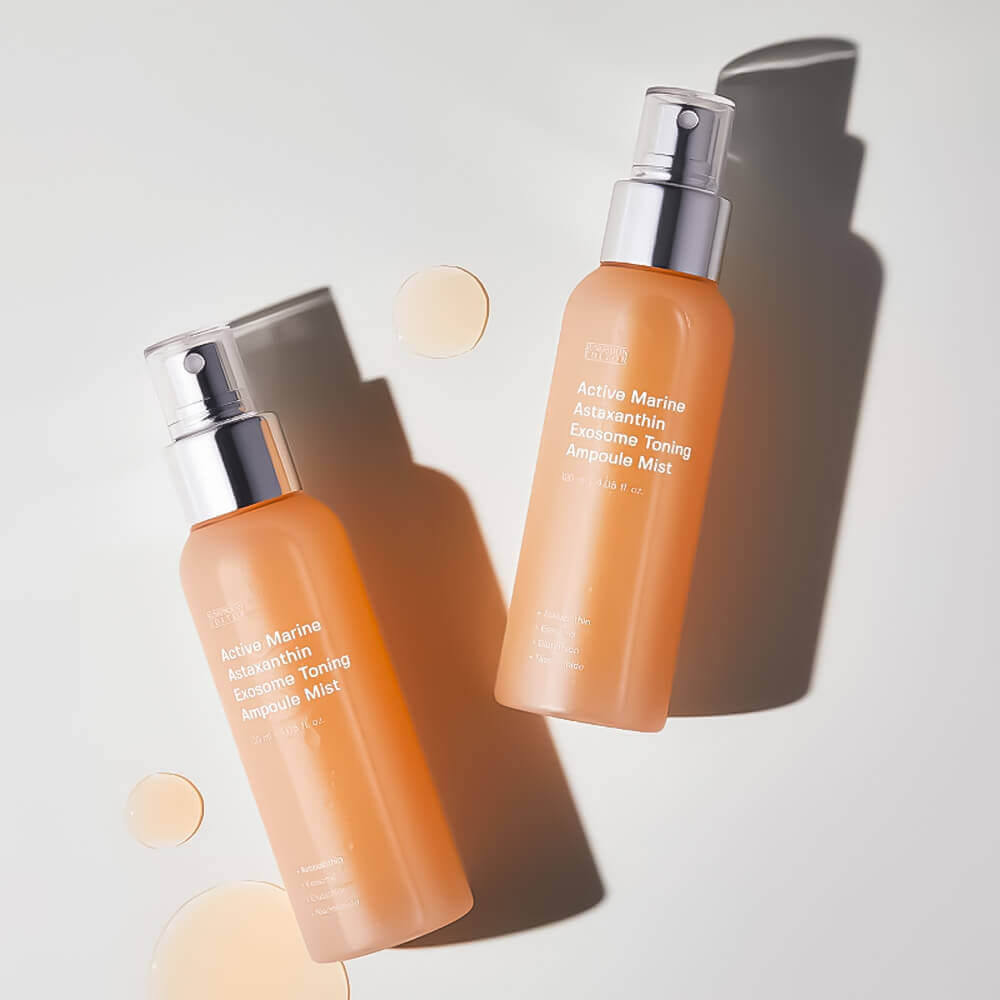 Мист Sungboon Editor Active Marine Astaxanthin Exosome Toning Ampoule Mist уменьшает покраснение и раздражение, устраняет тусклость, выравнивает тон. Увлажняет, укрепляет гидролипидную мантию, повышает эластичность.