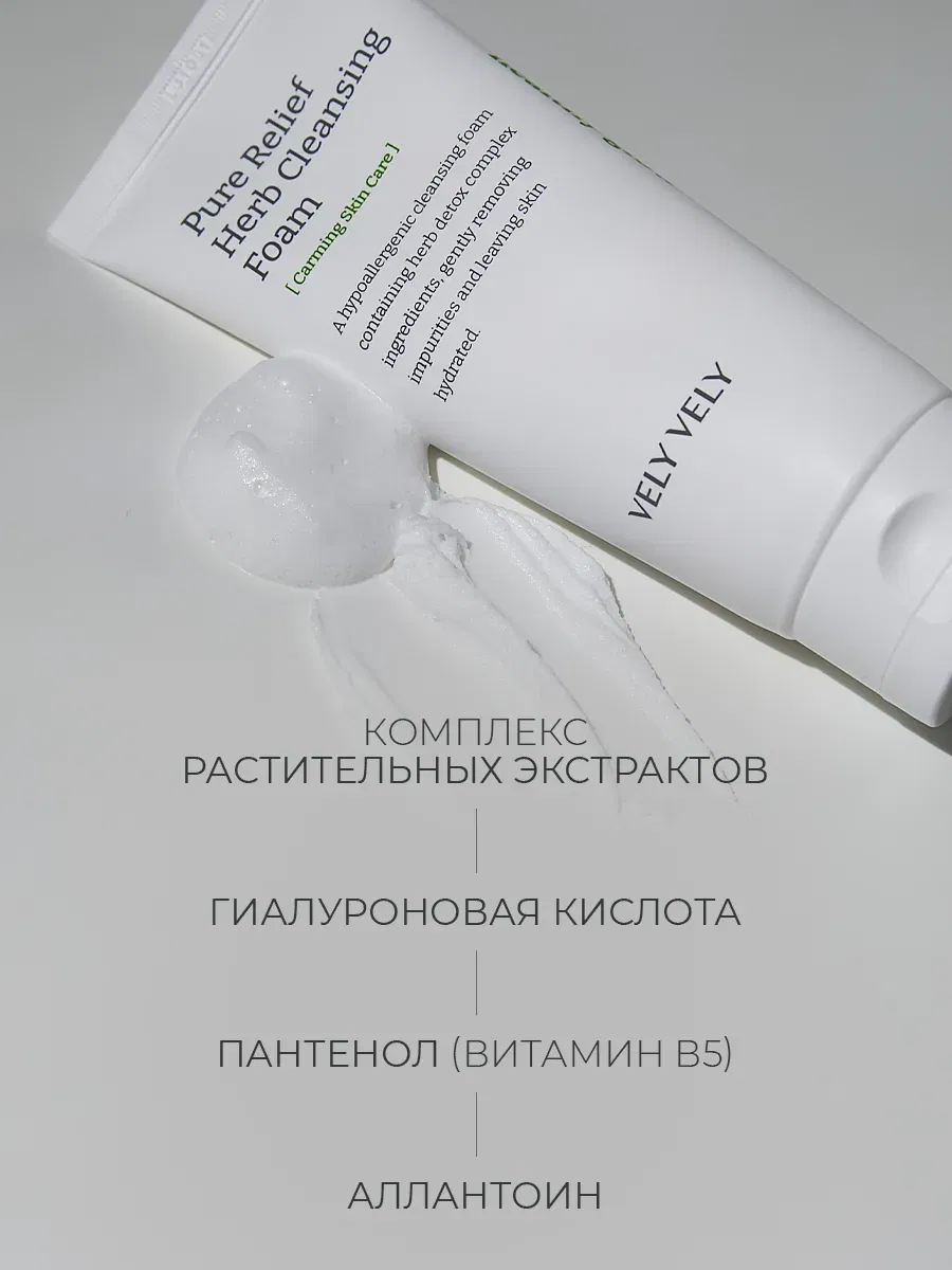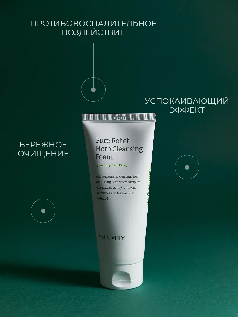 Пенка для глубокого очищения на травах Vely Vely Pure Relief Herb Cleansing Foam 150мл
