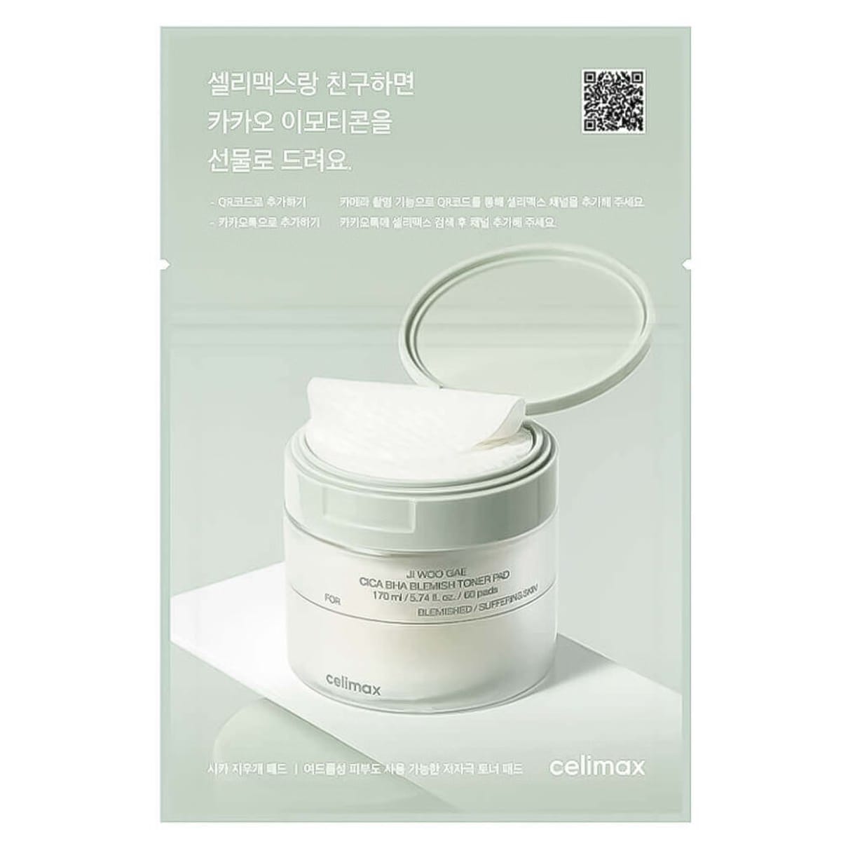 Пилинг-пэды от воспалений для проблемной кожи Celimax Ji Woo Gae Cica BHA Blemish Toner Pad 60 шт