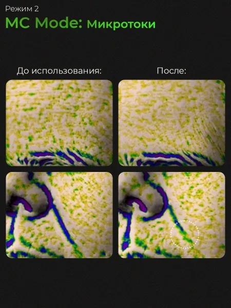 - Зеленый (MC Mode) — улучшает микрорельеф и насыщает ткани влагой