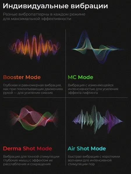 *Режимы LED-терапии можно настроить для каждого режима (электропорация, микротоки, EMS, электронидлинг и УЗ-вибрация) в официальном приложении medicube.