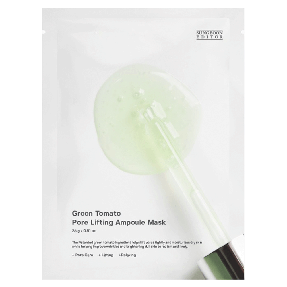 Тканевая маска для сужения пор Sungboon Editor Green Tomato Pore Lifting Ampoule Mask — экспресс-средство для увлажнения и восполнения дефицита витамином и минералов, необходимых для поддержания молодости кожи.