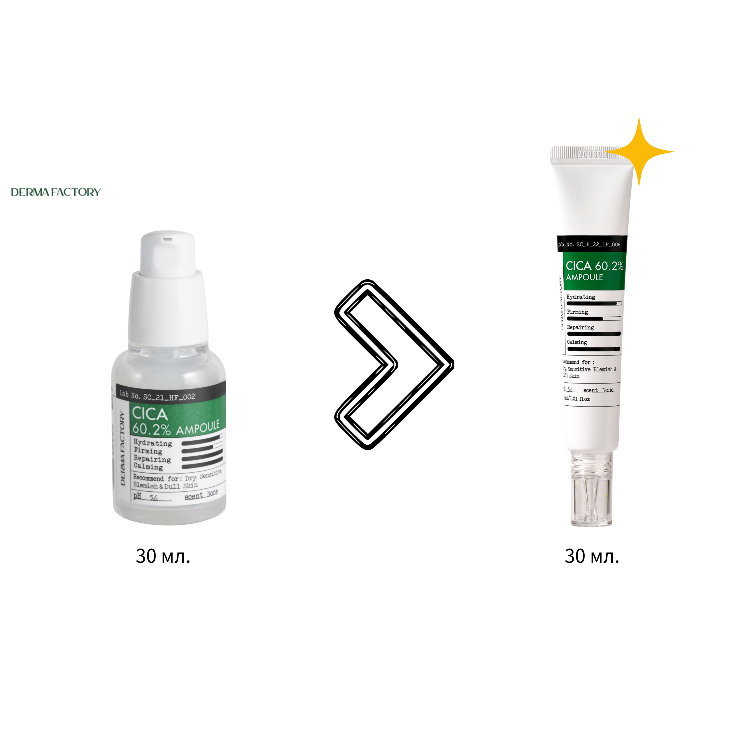 Ампула Derma Factory Cica 60.2% Ampoule увлажняет, смягчает и дарит комфорт чувствительной коже, борется с раздражением и покраснением, нормализует кислотно-щелочной баланс благодаря уровню pH 5.6±1.