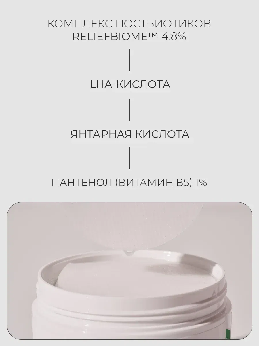 - Запатентованный актив RELIEFBIOME оказывает мощнейшее успокаивающее действие, устраняет красноту и способствует снятию воспалений. Интенсивно увлажняет и удерживает влагу в коже.