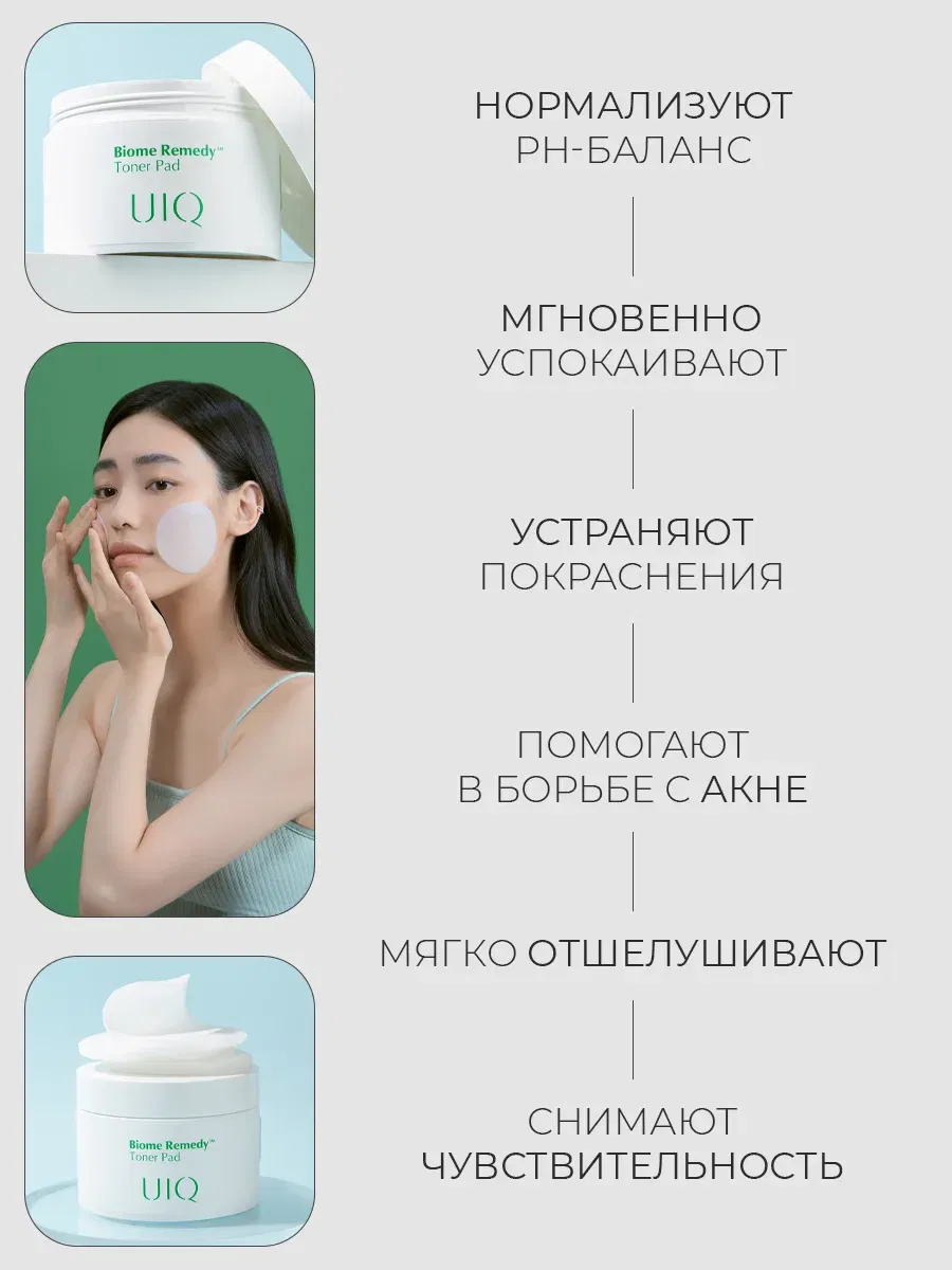 Деликатные отшелушивающие пэды с пробиотиками UIQ Biome Remedy Toner Pad помогают удалить остатки загрязнений, полирует и смягчает огрубевшую кожу и повышает проницаемость эпидермиса. Стимулирует клеточную регенерацию и ускоряет процессы обновления.