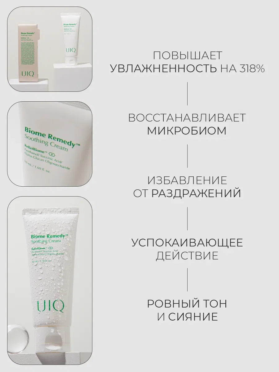 Успокаивающий гель-крем с постбиотиками для восстановления и сияния UIQ Biome Remedy Soothing Cream 50 мл